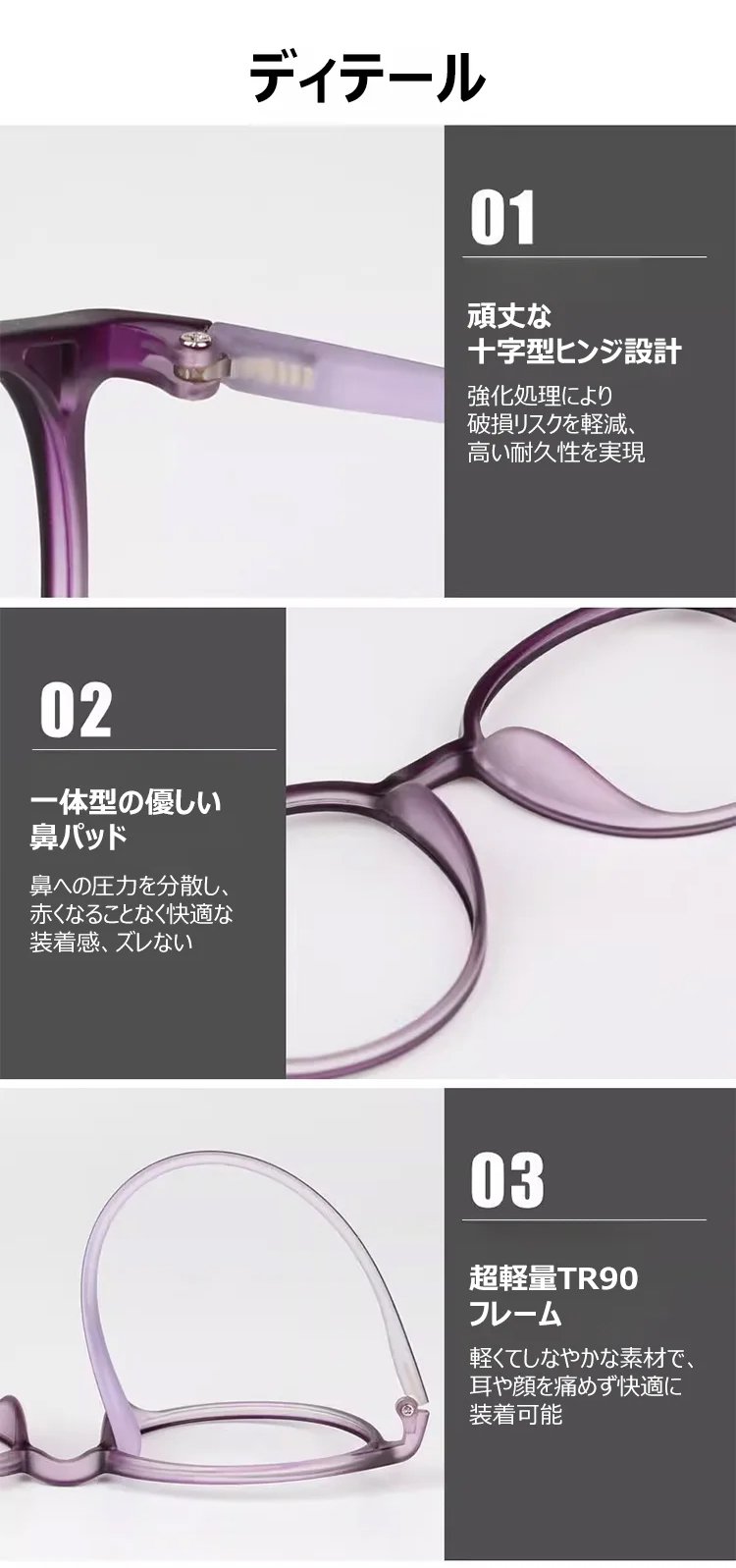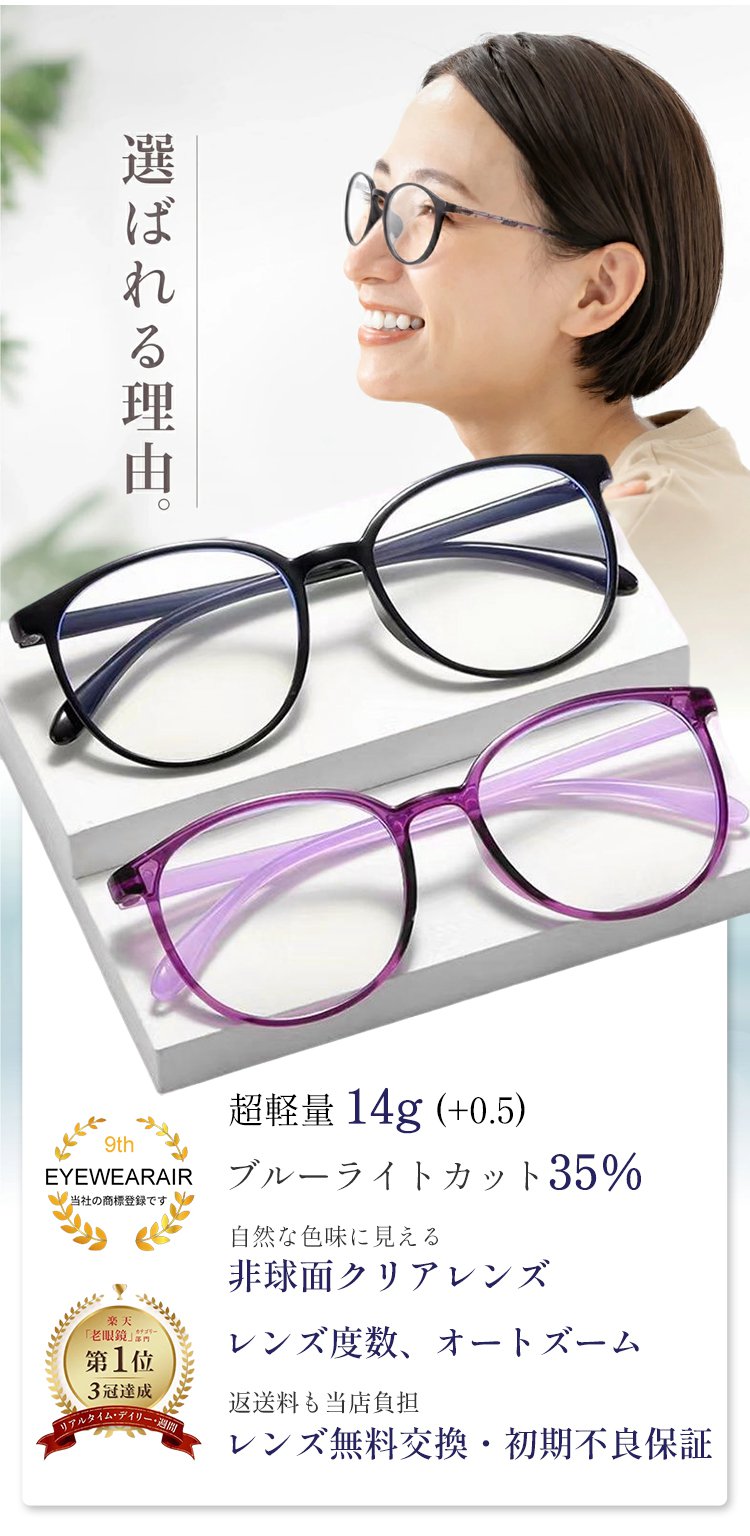 【視力回復】自動ズーム、インテリジェントアンチブルーライト、曇り止め、紫外線防止、超軽量、快適な老眼鏡