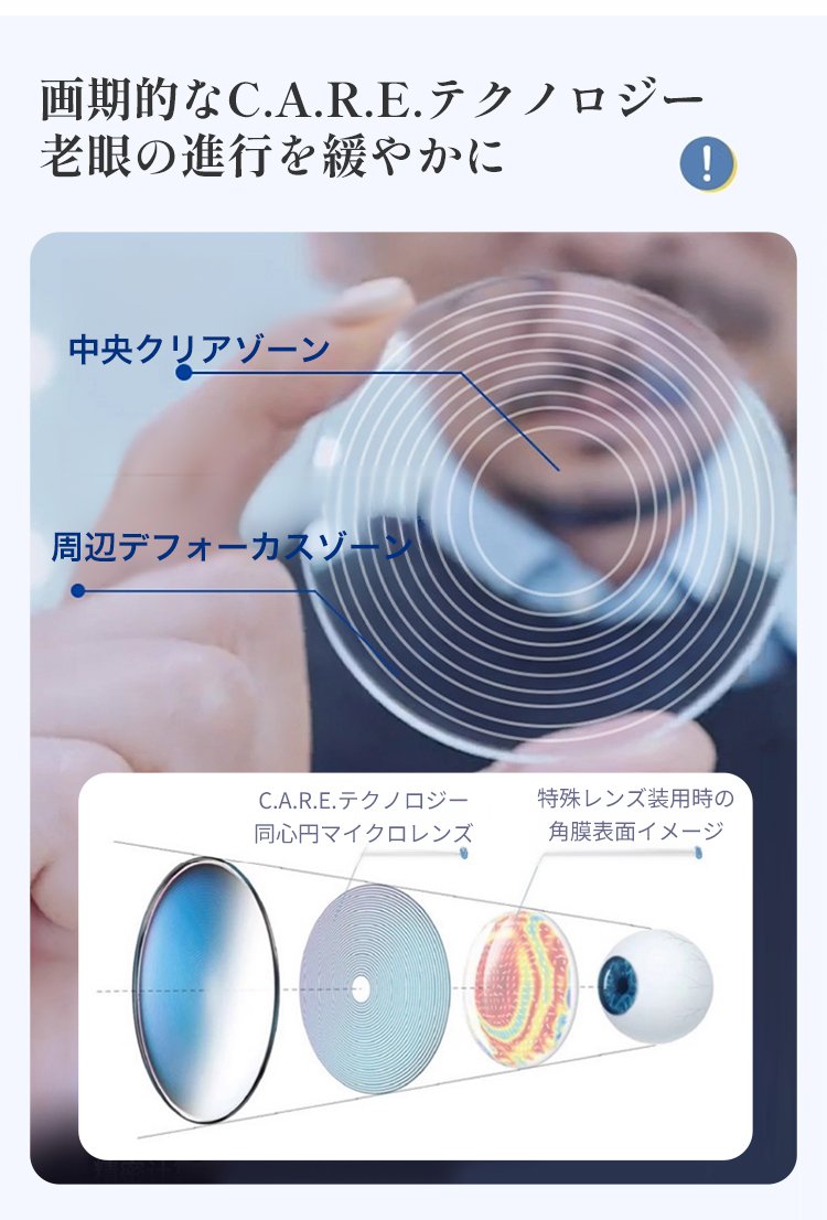 たった2ヶ月の装用で、若々しい視力を取り戻します。オートフォーカス技術により、検眼は不要です。軽量で快適な装用感で、日本の工場から直送されます。10年にわたる研究と最新のドイツ製光学インテリジェントチップを搭載。もし視力回復にご満足いただけない場合は、10倍の補償をさせていただきます。